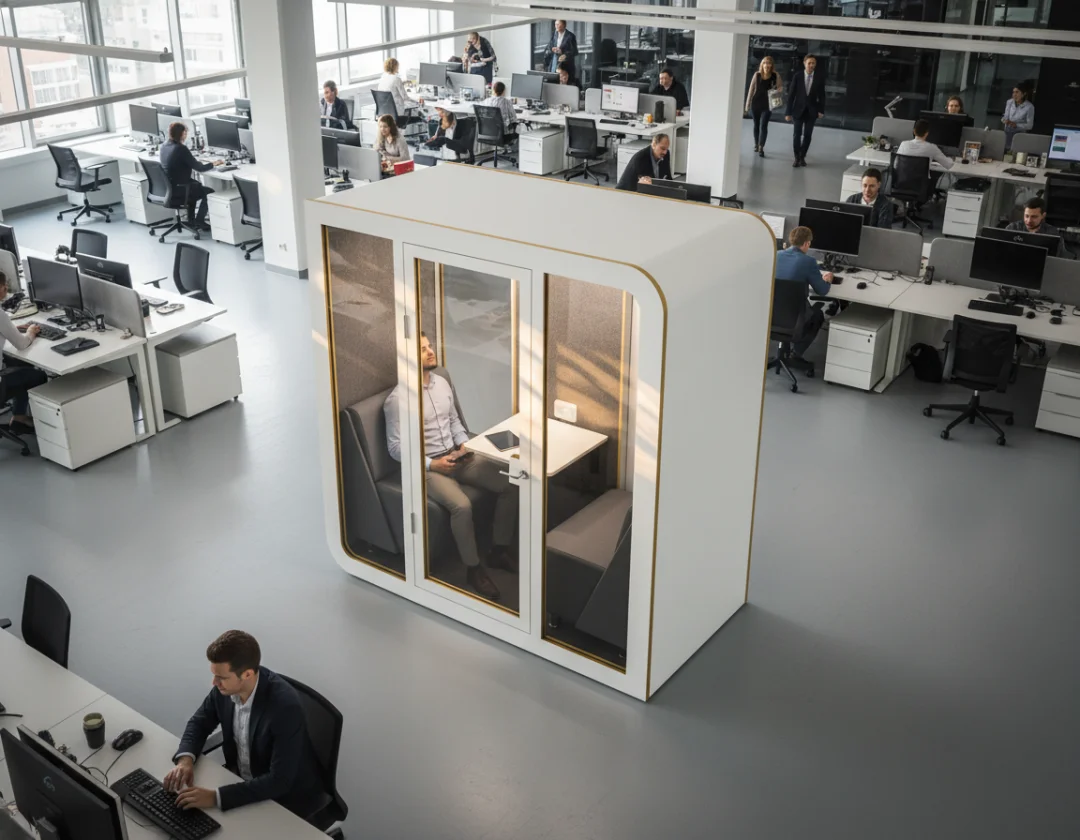 Vom lauten Großraumbüro zum produktiven Arbeitsplatz mit einer Akustikkabine — ohne Umbau, ohne Wartezeit.
